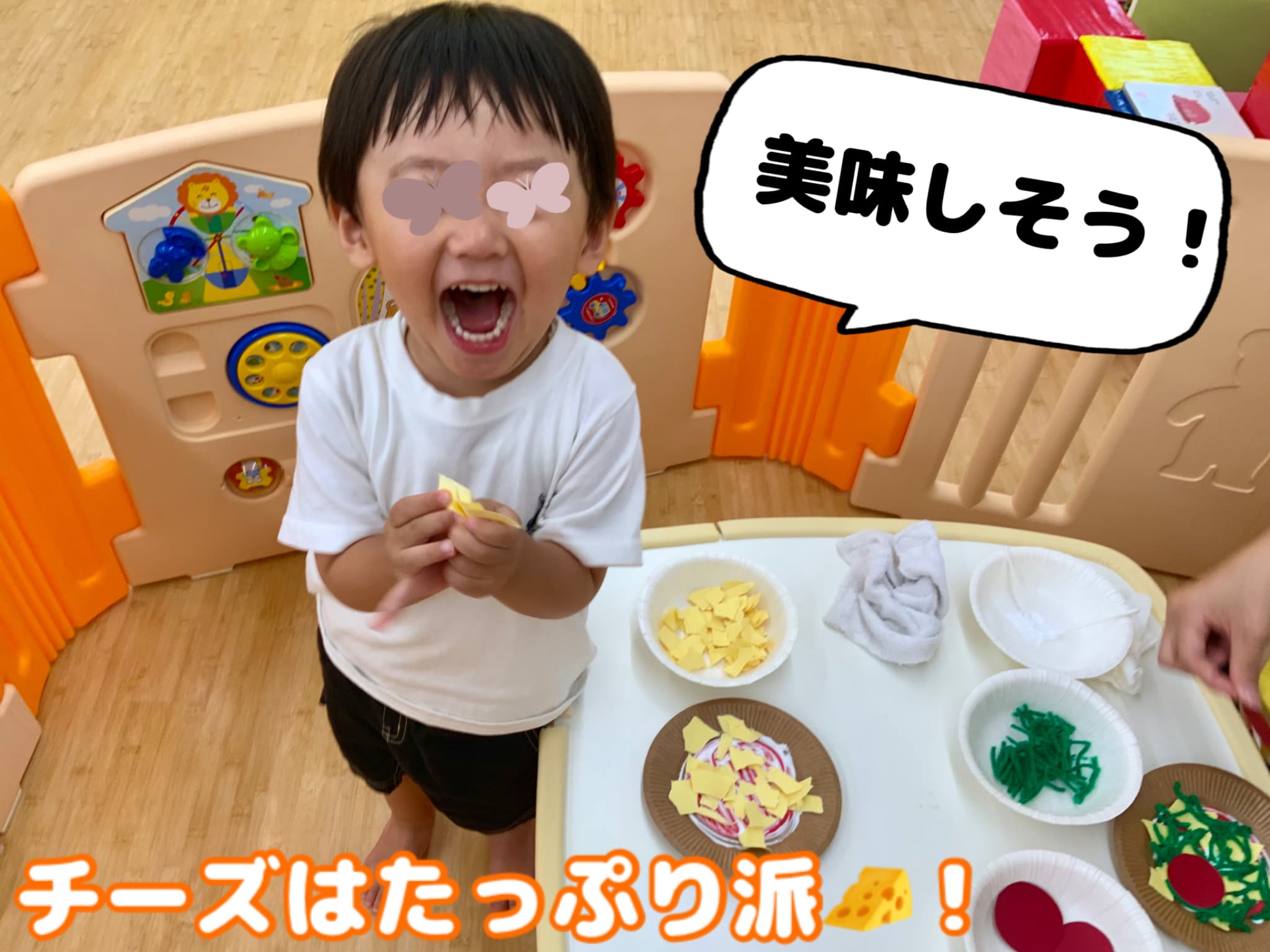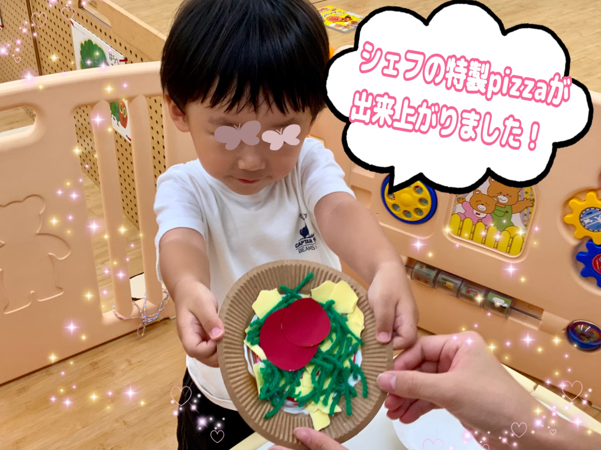 完成した作品を持って「ピザが焼けました〜!」と嬉しそうに見せてくれる姿も、とても可愛らしかったです。