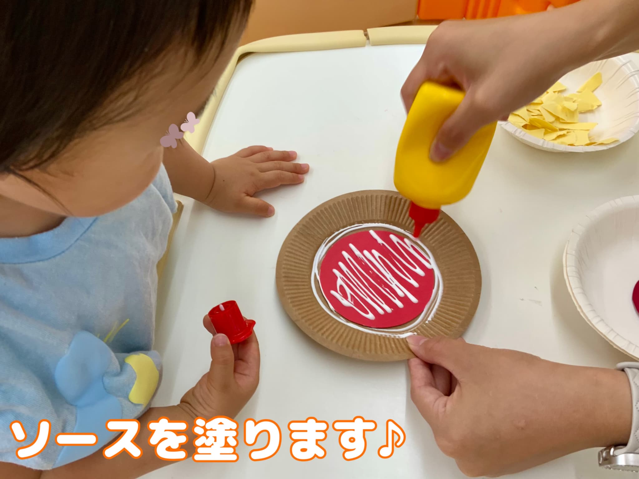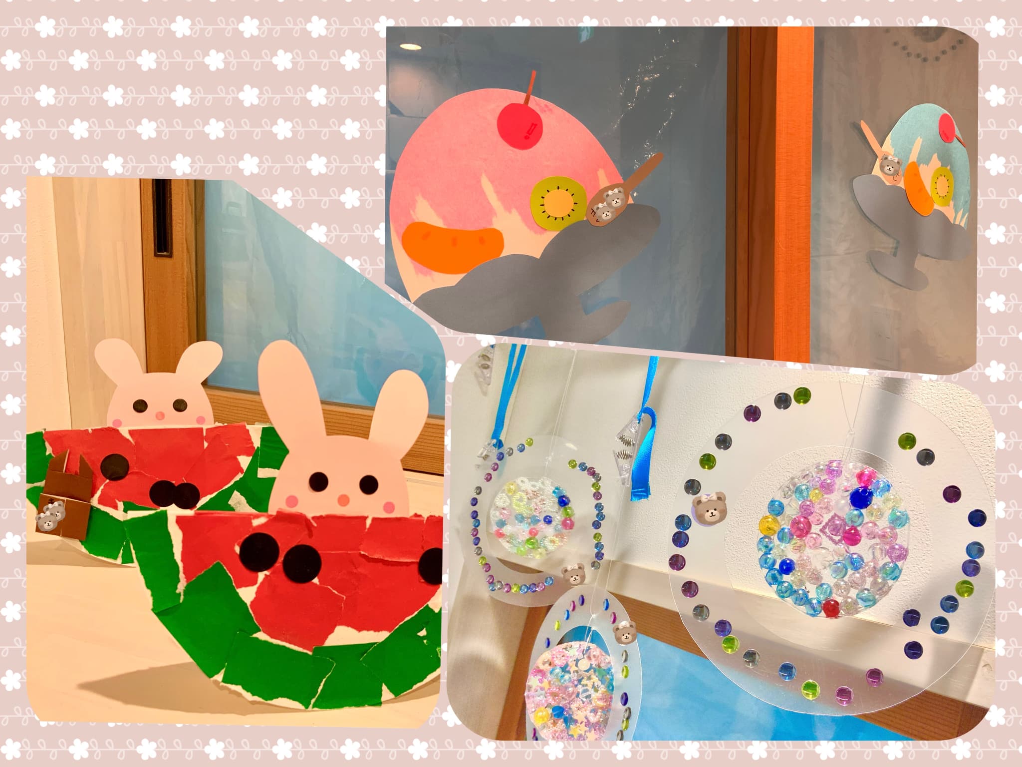 0歳児クラスではかき氷、1歳児クラスではピザ、2歳児クラスではアイスや綿菓子、そしてチョコバナナの製作を楽しみました🍧🍌