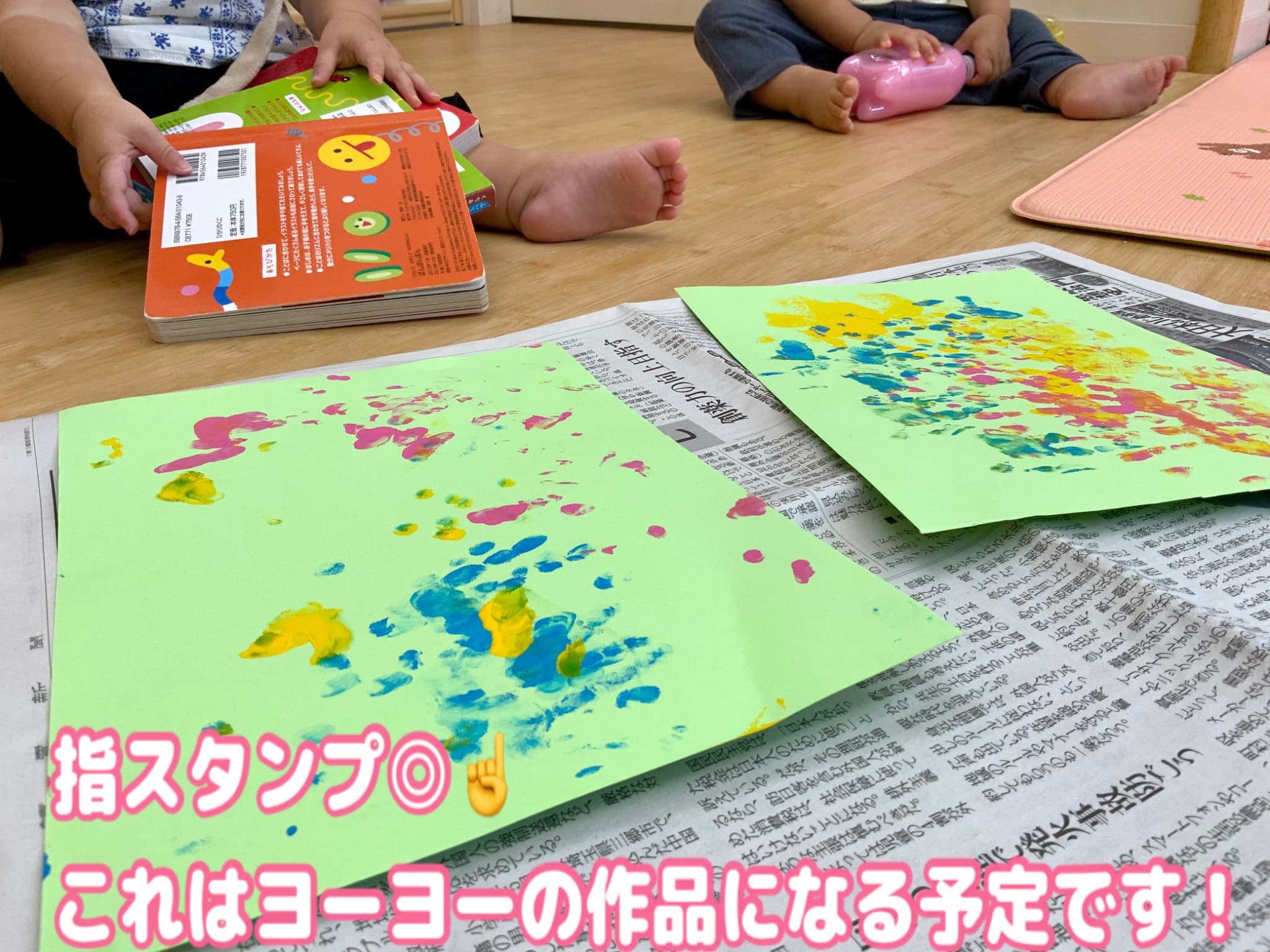 すたいに絵の具がついてしまうほど、夢中で指スタンプを楽しんでいました😊🎨