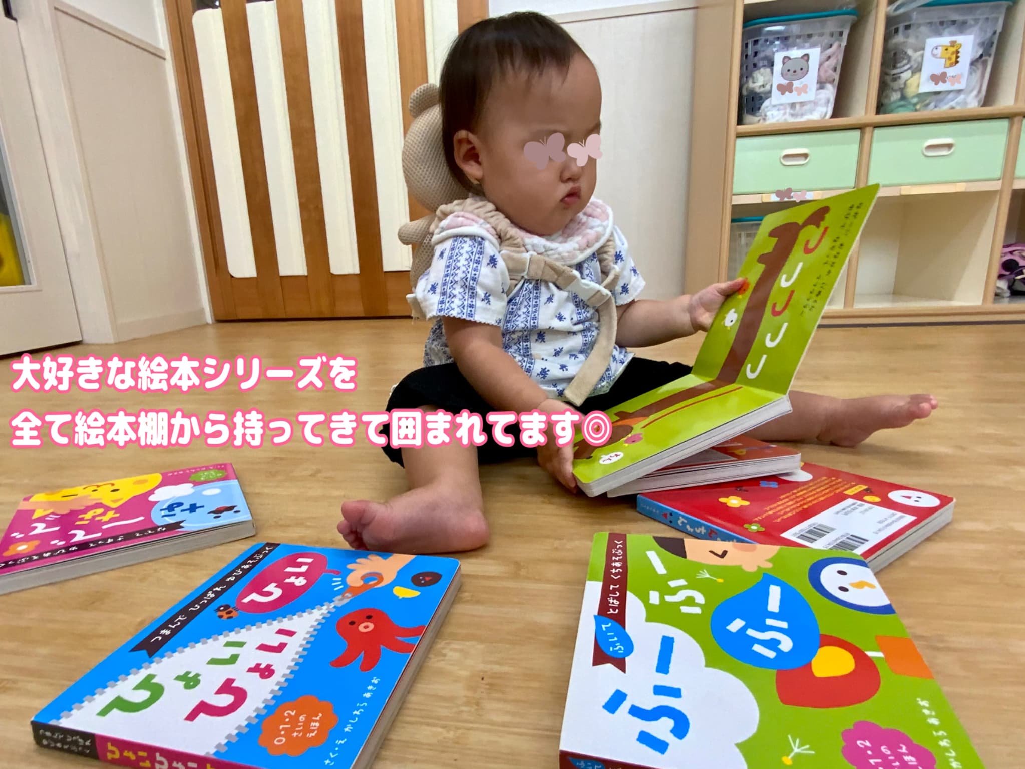 0歳児クラスでは、お気に入りの絵本を棚から全部出してきて、まさに『本に囲まれて』1冊ずつじっくりと楽しむ姿がとても微笑ましかったです☺️