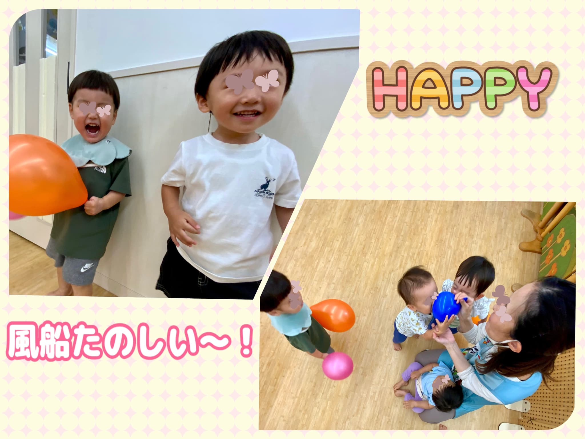 暑すぎて外で遊べない日は、室内での運動あそびやリトミック、ダンスを楽しんだり、たくさんの風船をふくらませて遊んだりとお部屋ならではの遊び方を満喫しています🎈