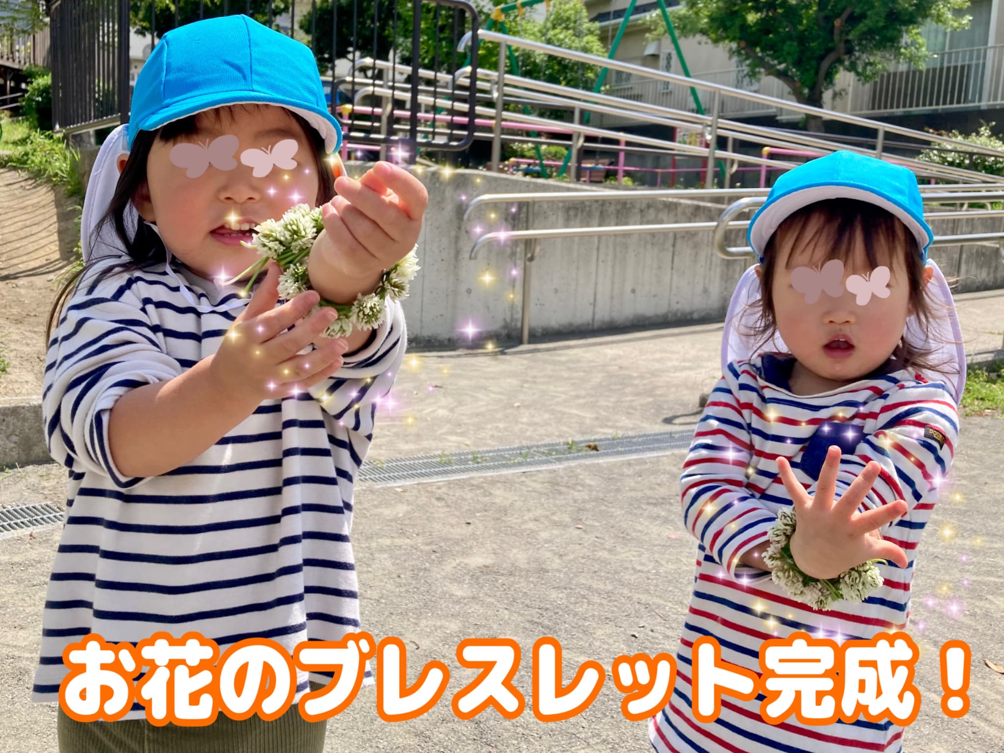 お散歩先の公園で見つけた草花を集めて、花冠やブレスレットを作るのが大人気です!