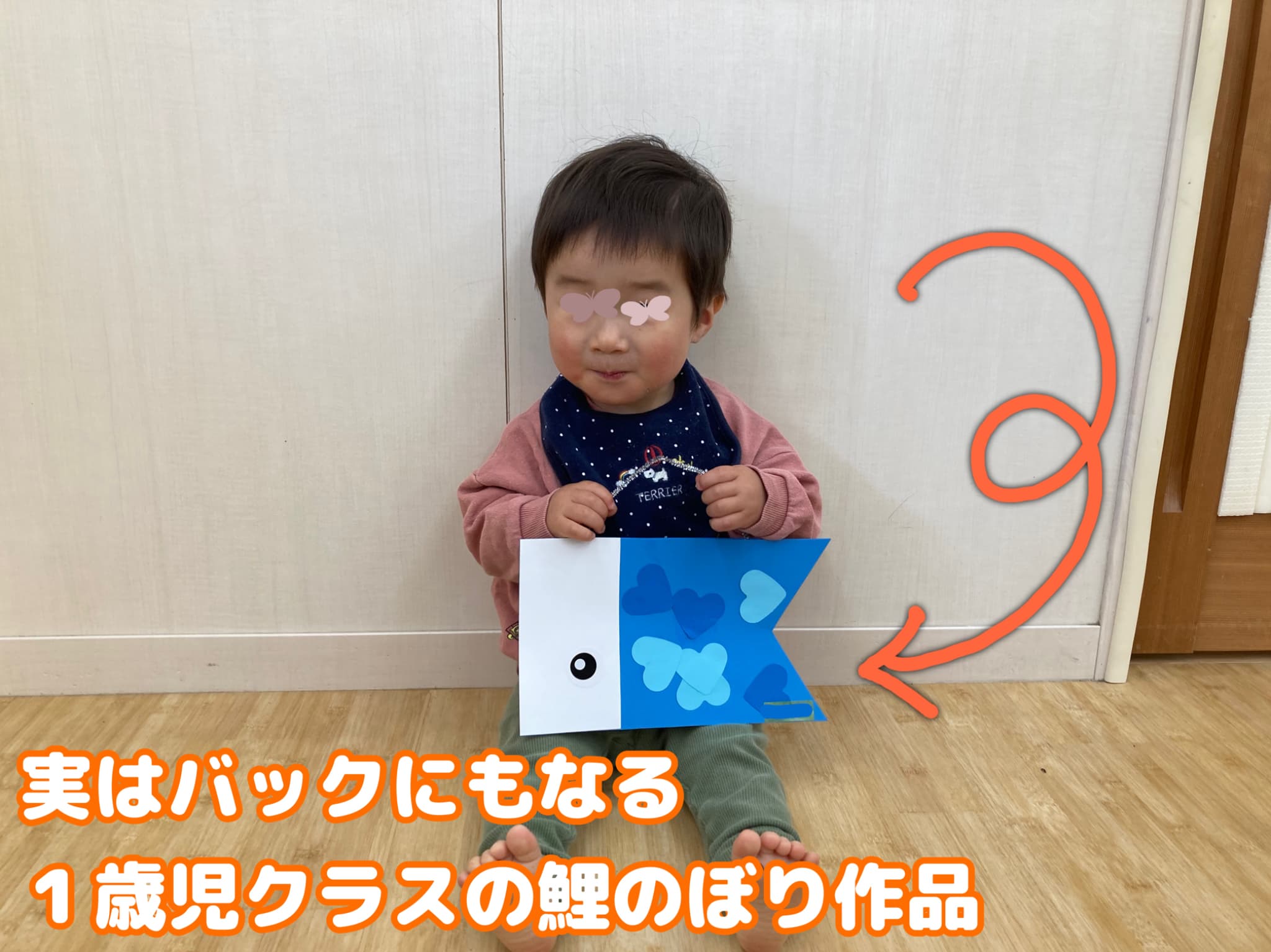 そして、1歳児クラスで製作した鯉のぼりはなんと「バック型」となっているとのこと🎒✨
