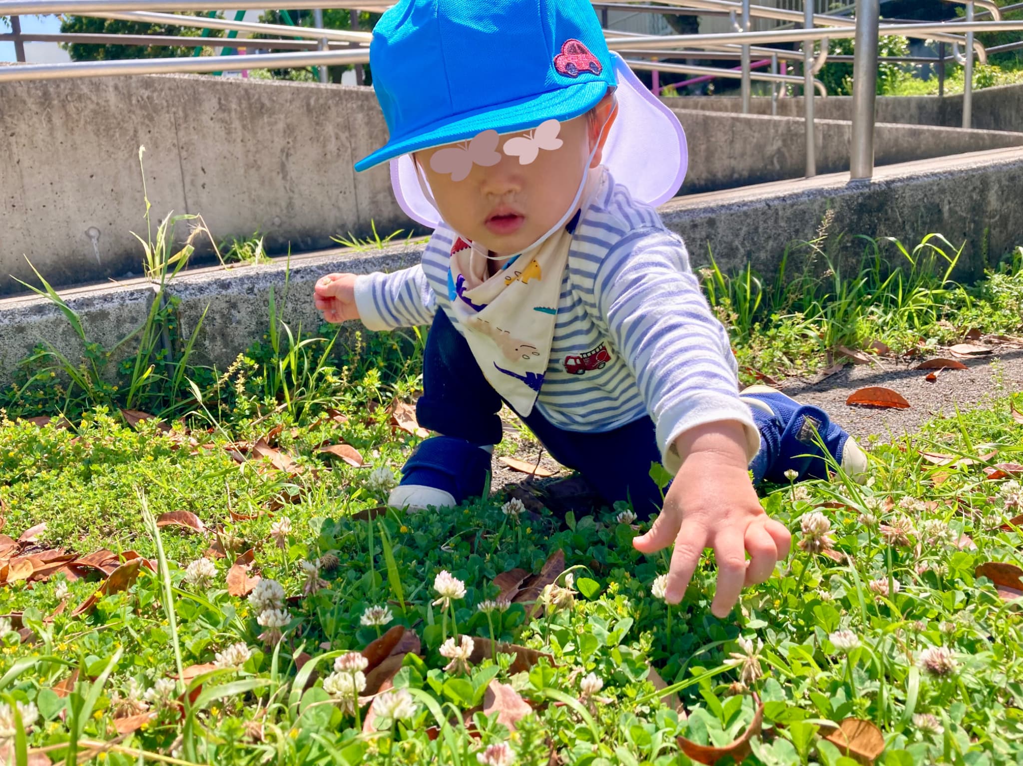 男の子たちも「いいのあったよ~!」と足元をじっくり観察してお気に入りの草花を探す姿がありますが、気がつくとてんとう虫探しに夢中になっていたりと、そういった様子もとてもかわいらしいです👀🪻✨