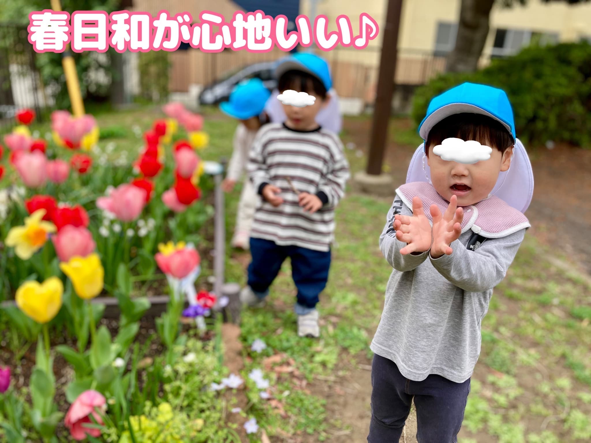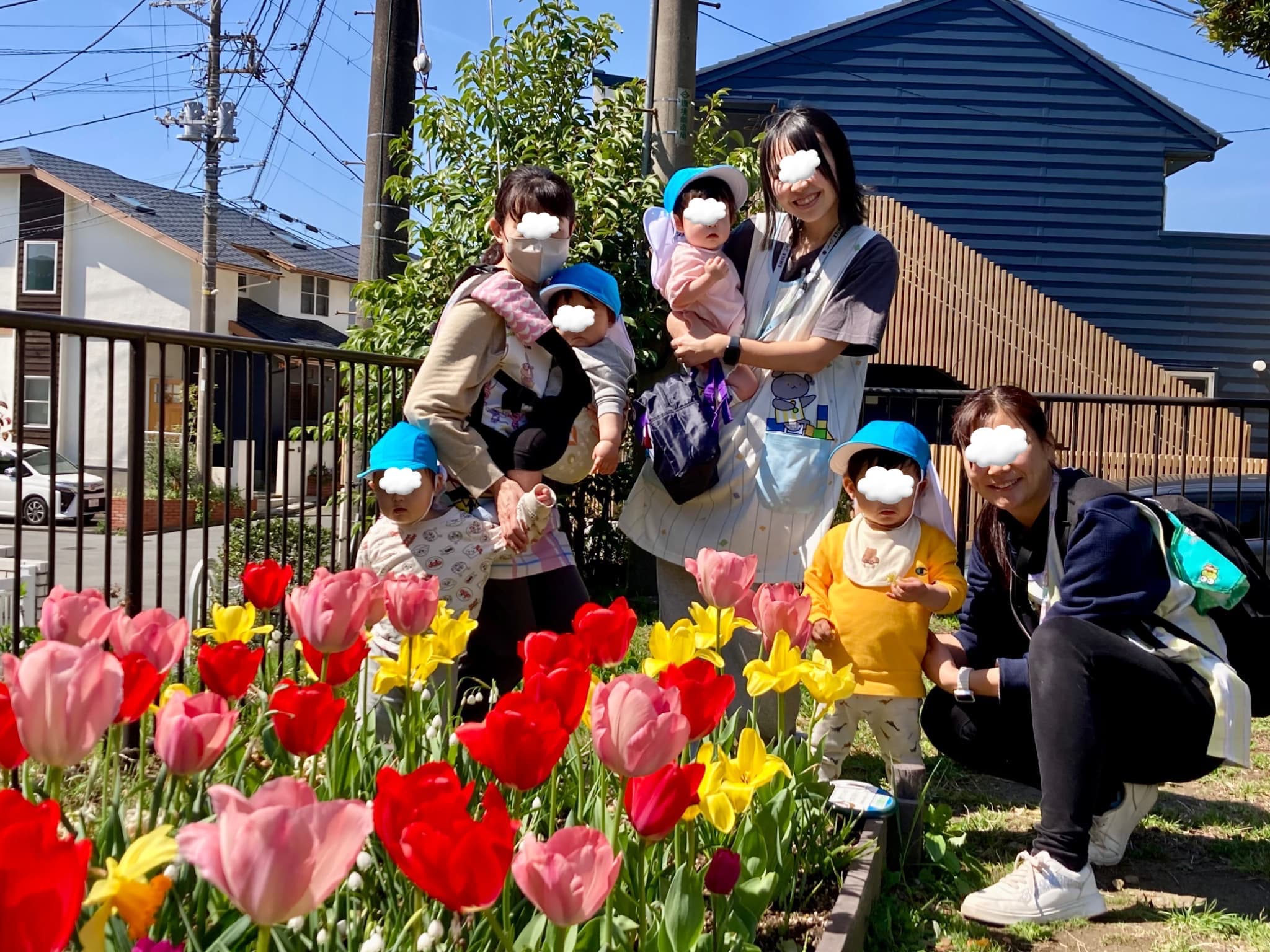 お外遊びでは、小菅ヶ谷第五公園の色とりどりのチューリップが満開です🌷