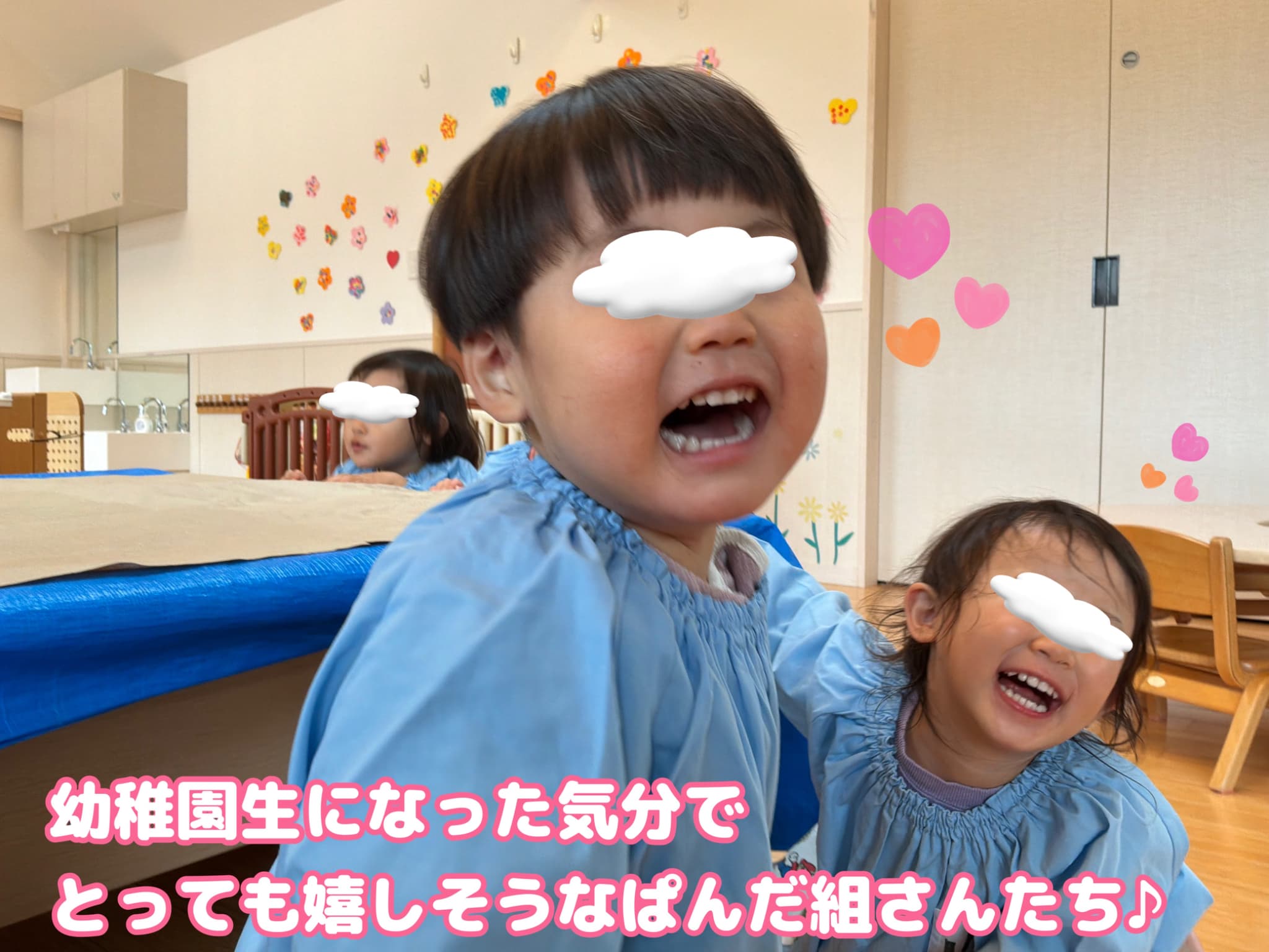 飛び級で「幼稚園生になっちゃった!」と、気分はすっかり幼稚園児で、最後まで大はしゃぎで楽しんでいました!